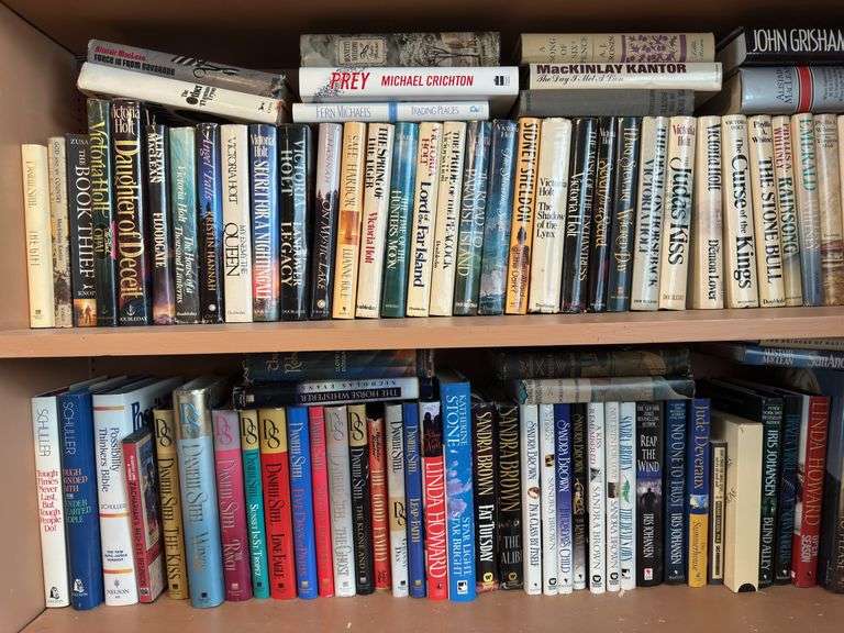 Books. 2 shelves. Hardbacks. Novels. See photos. Various conditions.