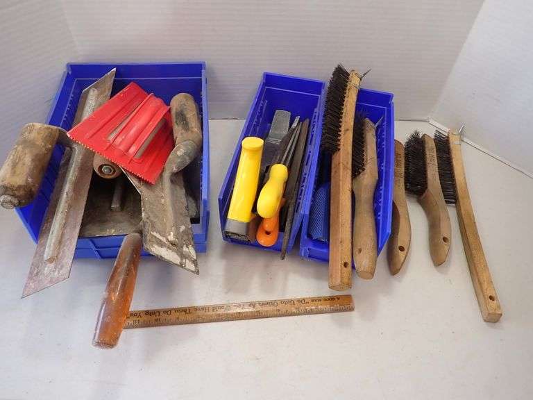 LOT 55 - TOOLS LOT - SEE ALL PHOTOS - WIRE BRUSHES - METAL FILES - TILE TOOLS