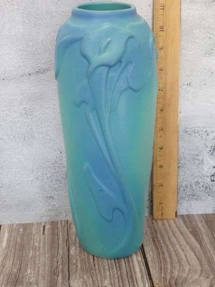 LOT 26 - Van Briggle Art Pottery Ming Blue Calla Lily And Leaves Ceramic Vase