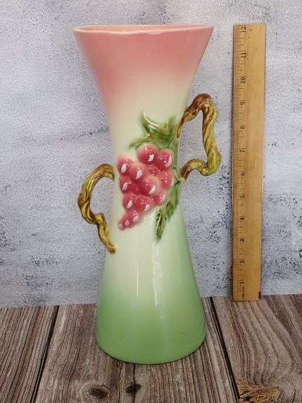 LOT 30 - Hull Tokay Pottery Pink Vase #12 Grape Cluster Green Vine Handles