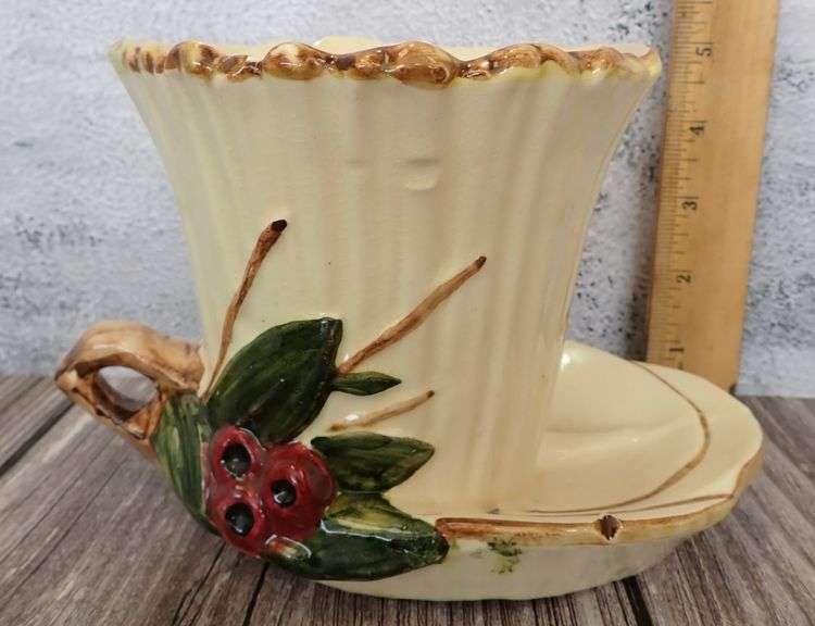 LOT 58 - McCoy Pottery Offset Saucer "Lotus Leaf Red Berries" Planter