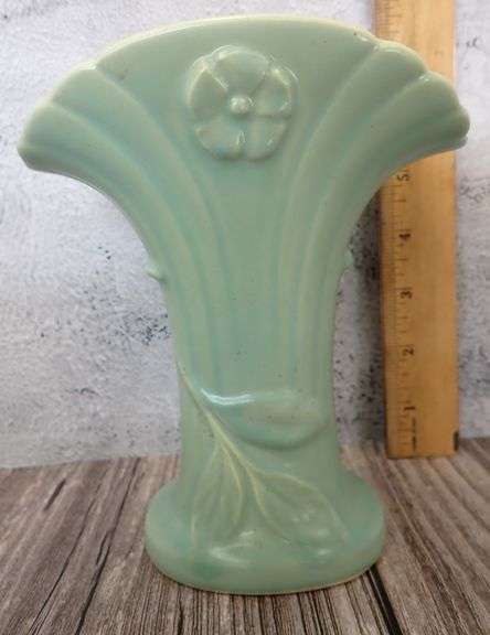 LOT 65 - Weller Pottery Fan Vase 1930s Blue Green 7.5"