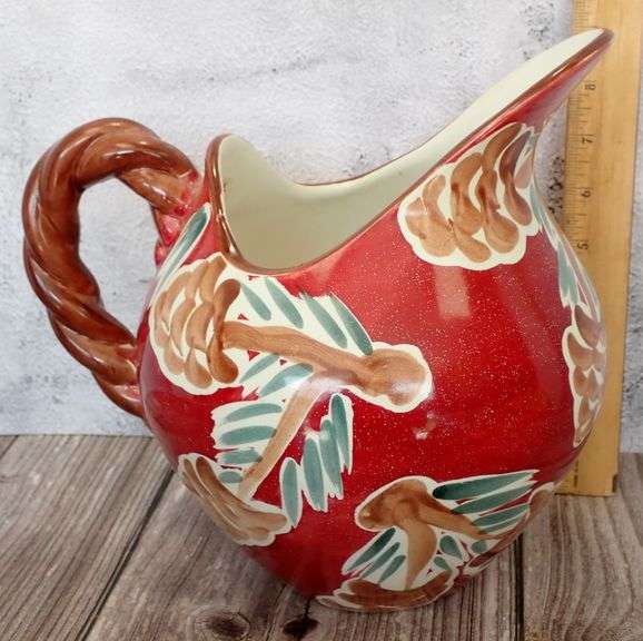 LOT 9 - Vtg Fioriware Zanesville OH Art Pottery Jug Pitcher Begonia Persimmons