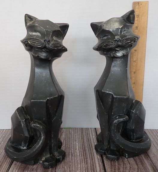 LOT 19 - Set 2 Vintage CUBIST SIAMESE CAT Sculpture Statues MCM Universal Statuary 1961