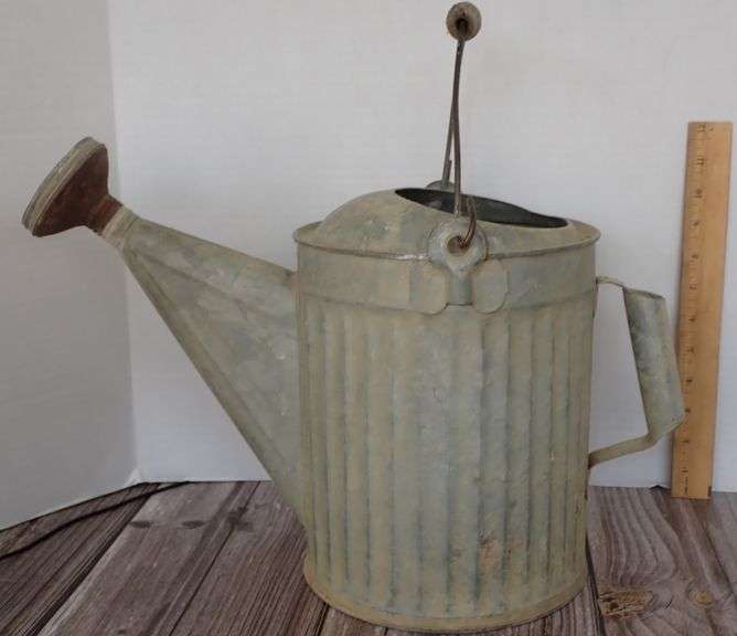 LOT 76 - Galvanized Watering Can with original Sprinkler Head and Wire / Wood Handle - Holds water