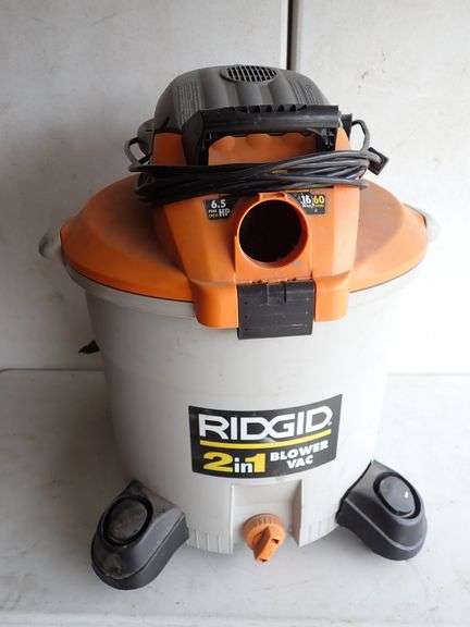 LOT 22 - RIDGID 6.5hp 16gal WET/DRY VAC 2in1 Blower Vac w/Hoses & Attachments - Tested Works perfect.