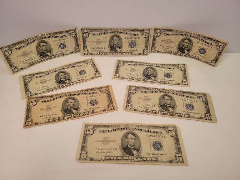 Includes (3) 1953 & (5) 1953-A $5 Silver Certifcate Lot - All Circulated - $40 Face