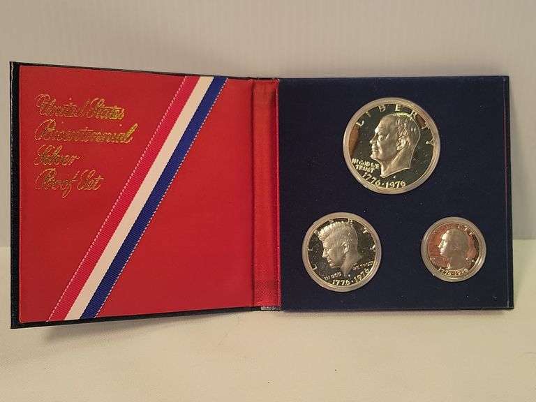 1976 US Silver Proof Set, includes 40% Silver Dollar, Half & Quarter - Note No Box, Has COA, Nice Cameo's