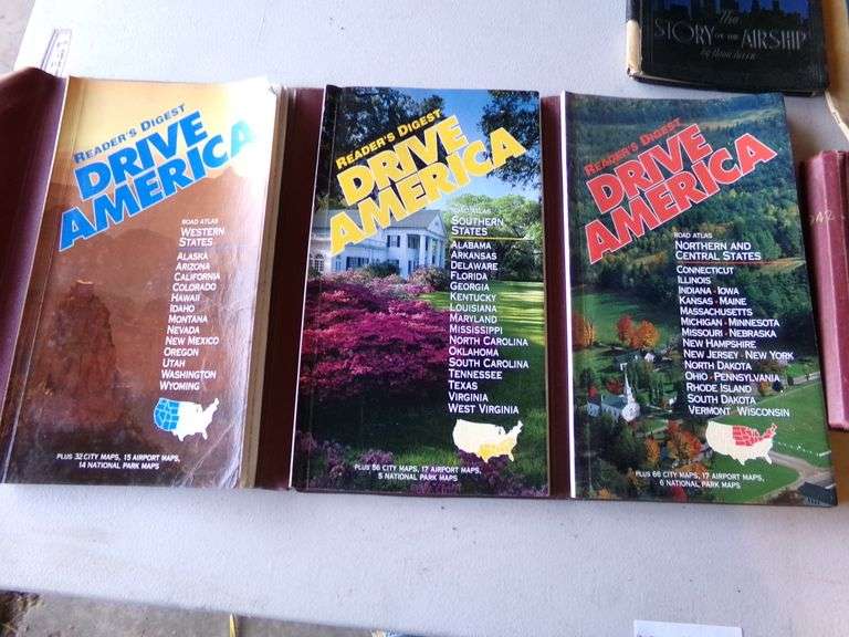 1931 Airship book, 1942 Diary, Readers Digest Atlas.