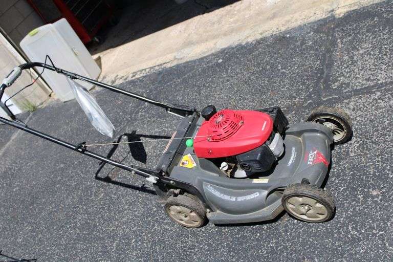 Honda HRX 217 Gas Powered Lawn Mower with Variable Speed and Bag Attachment. Untested. In overall good condition with finish wear. See photos for more details. No other items included.