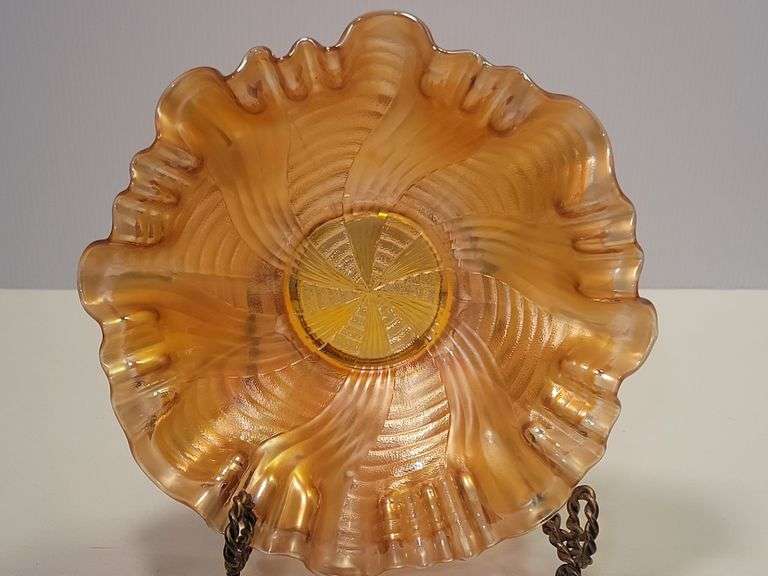Fenton “Ribbon Tie” 8.5” x 2.5" Marigold 3-1 Edge Bowl