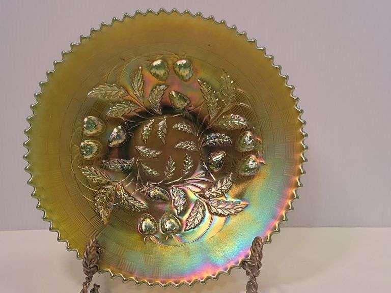 Northwood “Strawberry” Green 9” x 2" Plate with Basketweave Exterior