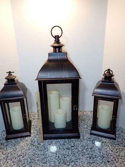 LOT 164 - 3 Plastic Bronze Battery operated Hurricane Lanterns