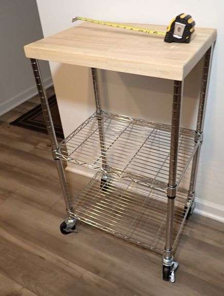 LOT 48 - 3-Tier Wire Storage Rack with Wood Block top.