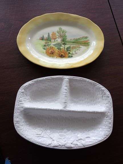 LOT 81 - Serving Platters - Basket Weave by Loucarte Portugal & Ceramiche Tadinate Italy Sunflower Farmhouse