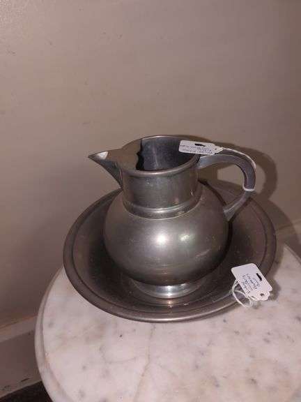 Vintage Sheffield Pewter Pitcher and Woodbury Pewter Basin.