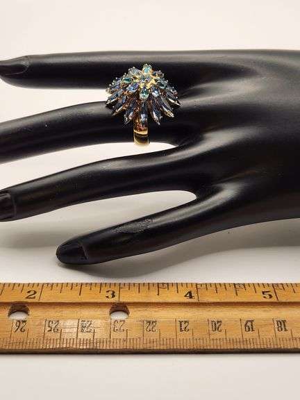LOT 42 - Napier 1960's Cocktail Ring, Sapphire and Aqua Blue Navette Marquis Rhinestones