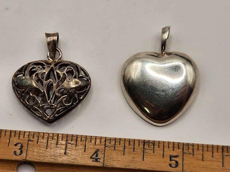 LOT 82 - TWO .925 Sterling Silver Necklace Pendant Hearts