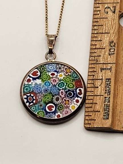 LOT 93 - Venetian Millefiori Pendant .925 Sterling Silver Italy w/gold filled 14" necklace