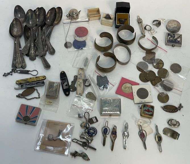 Tokens, bangles, cast souvenir spoons, tie clips, etc., and mementos from other large-scale events in the 1930s and 1940s.