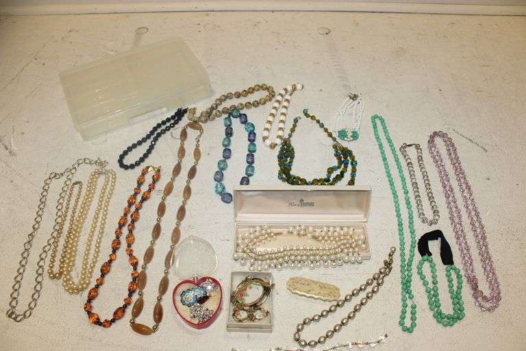 Fantastic beaded necklaces, vintage costume earrings and more. In good overall condition with finish wear or damage on some pieces. See photos for more details.