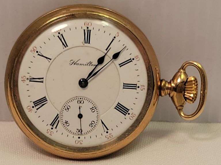 Hamilton Open Face Pocket Watch in Keystone-J Boss 20year Case, Serial Number 876376, 21 jewel, Size=16s, Grade 993, Est Year 1913, Running. Could not set hands
