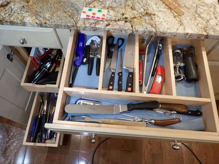 LOT 93 - Four Drawer Cleanout - Namebrand Utensils & Kitchen Essentials featuring 4 Wusthof knives