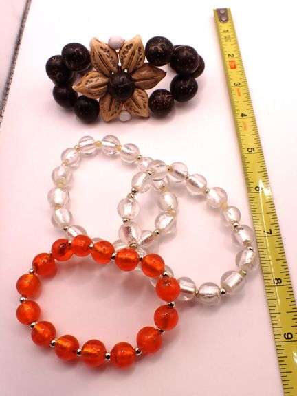 LOT 78 - Hawaiian Seed Nut String Bracelet & Carnelian Orange & Crystal Bead Stretch Bracelets