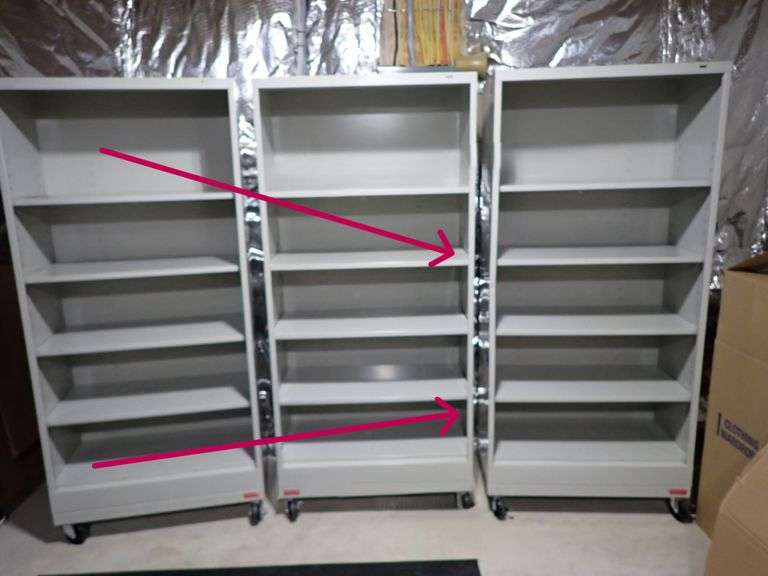 LOT 97 - #3 -TENNSCO Rolling Bookcase: Steel, 79 in tall, 36 in wide, 18 in deep, 5 Adjustable Shelves