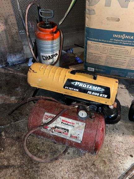 Empty Air Tank, Kerosene Protemp Heater & Metal Chemical Sprayer