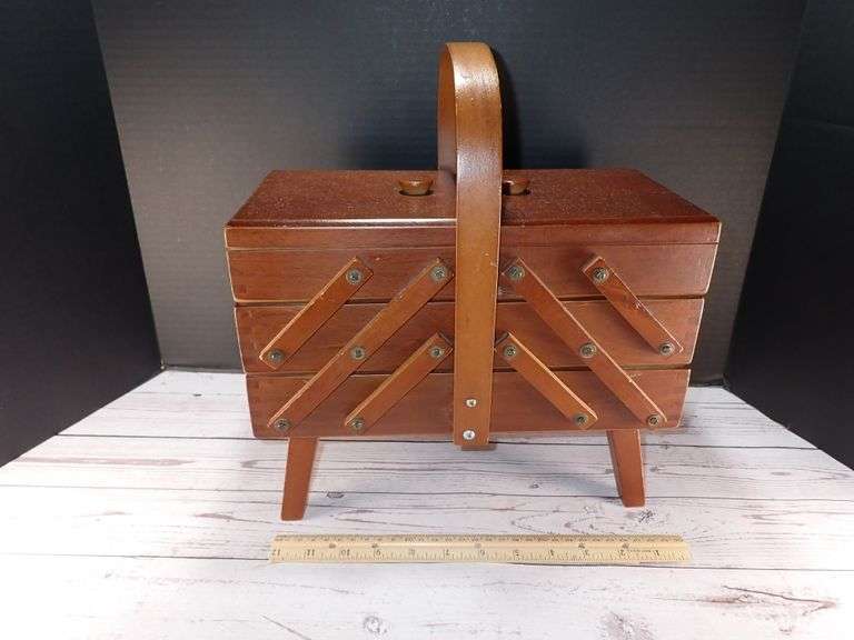 LOT 45 - Made in Romania - Vtg Accordion Sewing Box Vintage Craft Storage Box & CONTENTS