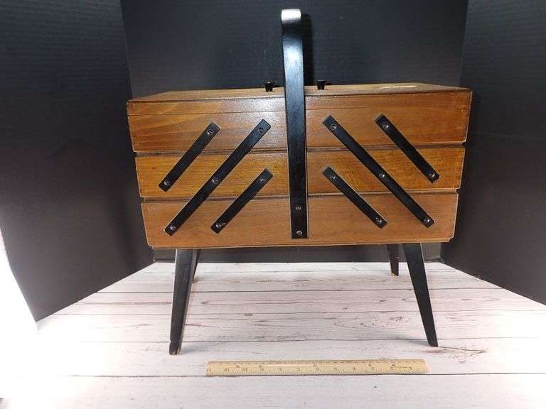LOT 47 - Made in Poland - Vtg Accordion Sewing Box Vintage Craft Storage Box & CONTENTS
