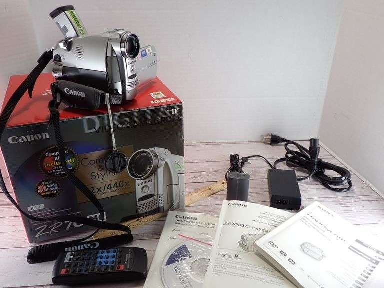 This camera includes the camcorder and remote, Charger cable and manuals/cd. The original battery is included but wasnt charged so we couldnt test it.