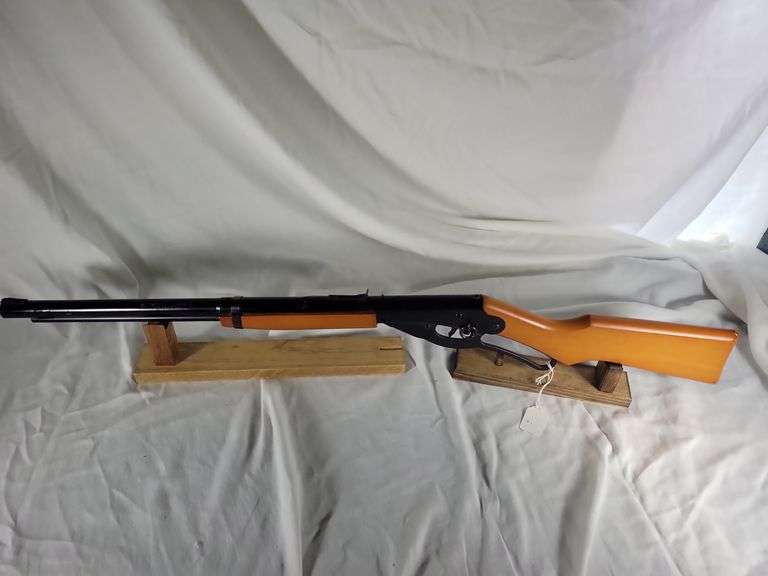 Daisy Model 1938-B Red Ryder Lever Action BB Gun. Rogers, Arkansas. Wood Stock & Forearm, Saddle Ring, Action works and fires. Has warnings and instructions on barrel.