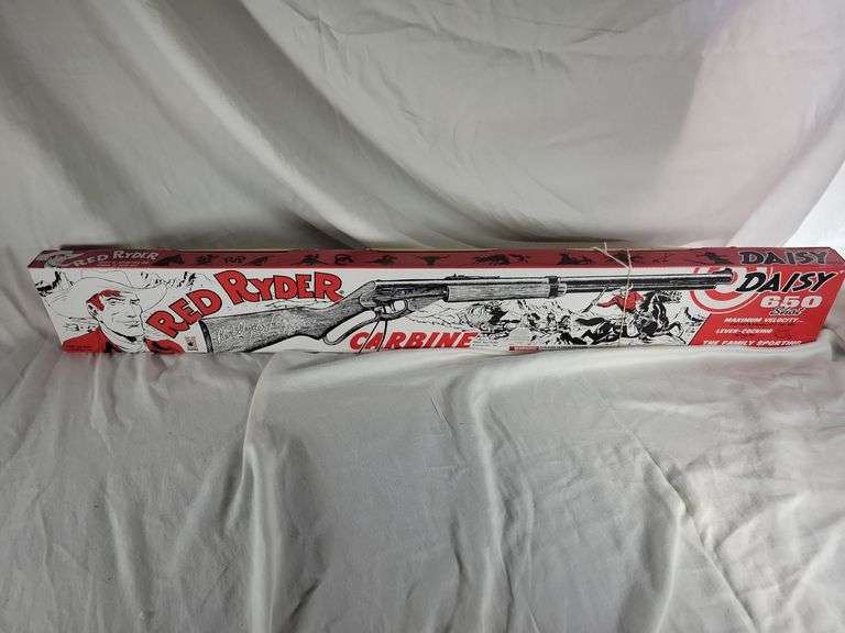 Daisy Red Ryder Carbine, New in Box, 650 Shot, .177 cal BB's, Rogers, Arkansas, Wood Stock & Forearm, has Saddle Ring, Safety, Leather Throng, Box has not been opened.