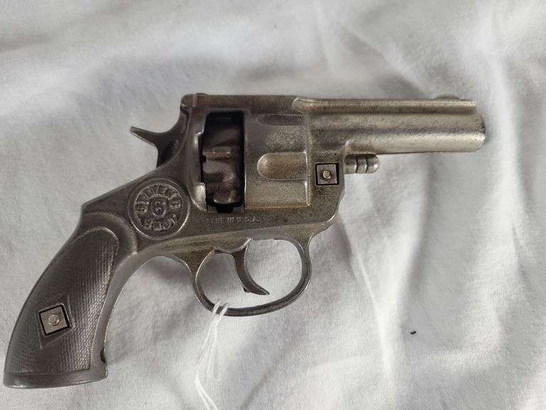 Stevens 6-Shot "Rapid Load" Nickel Plated Cap Gun, Double Action works. Measures 7" total