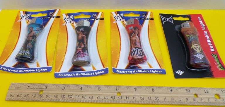LOT 119 - Lot of (4) New Electronic Refillable Wrestling Themed Lighters