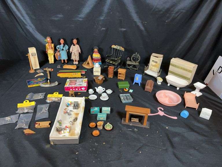 VTG doll furniture and accessories, some in original boxes. See photos.