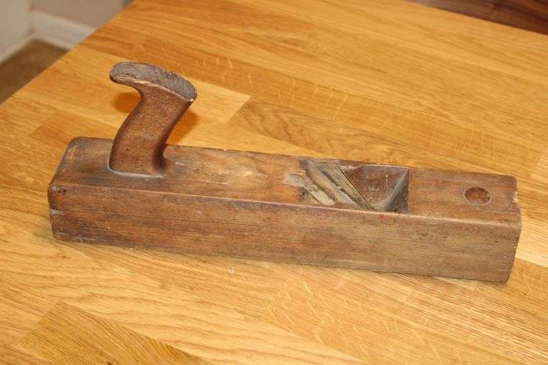This vintage wooden hand plane measures approximately 16 inches in length and features a classic rear handle and a cutout for the blade, which is present. Crafted from solid wood, this traditional carpenter’s tool shows signs of age and use, including some surface wear and marks, consistent with its age. The maker is unknown, but it’s a fine example of early joinery tools used in cabinetmaking and woodworking. Great addition for collectors, display, or restoration!