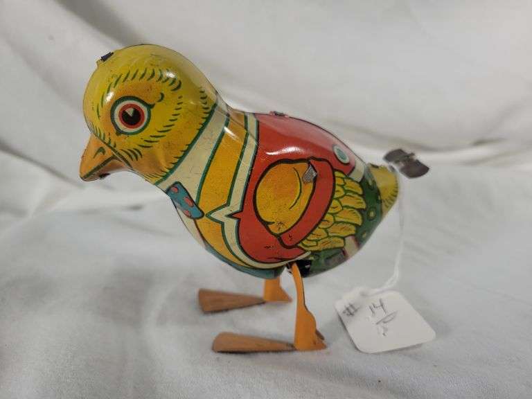 J. Chein Tin Windup Walking Toy Chicken. Works and has key. Litho is in Good Condition with minor play wear.