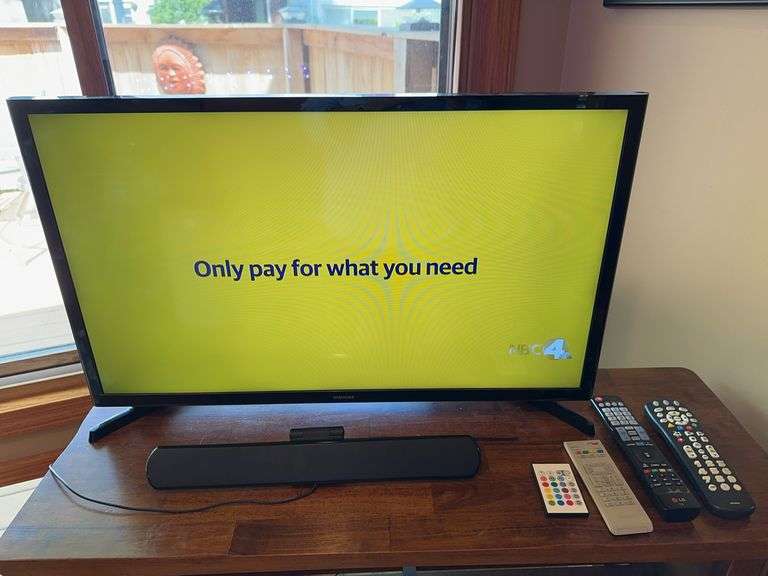 Samsung 32” TV. Works! Multiple remotes. GE antenna included. Party light on back - with remote! See photos.