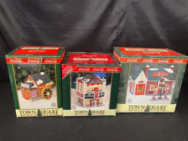 Lot of (3) Coca-Cola Town Square Collection Buildings in original boxes. Untested. See photos for details.
