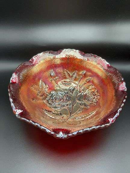 Imperial Sunset Ruby Red Open Rose Embossed Footed Bowl. No condition issues noted. See photos for details.