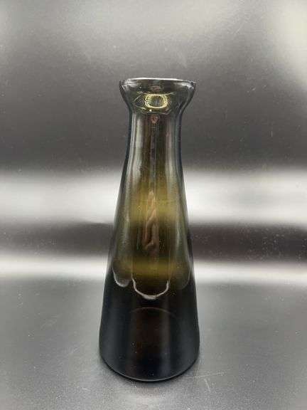 Graduated Smoke Art Glass Vase. Flea bites on rim, as shown. See photos for details.