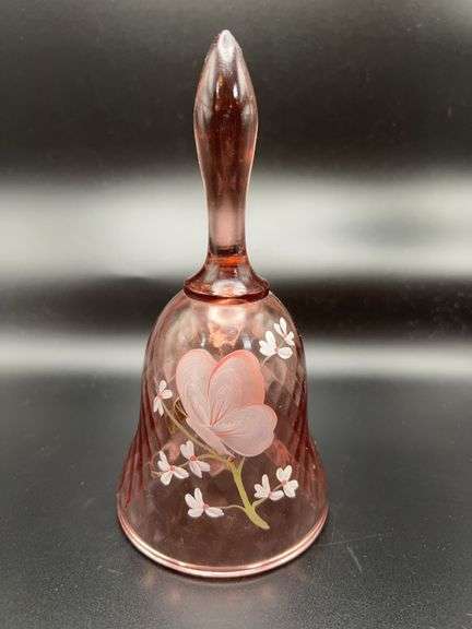 Fenton Clear Pink bell with diamond pattern. Hand painted & artist signed. Has stickers and clapper. No condition issues noted. See photos for details.