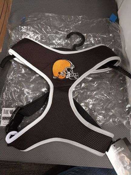 Show off your team pride while keeping your pet secure with this officially licensed NFL Cleveland Browns mesh harness vest. Made with breathable fabric and reinforced stitching, it provides comfort and safety for larger pets—embroidered team helmet logo on front.