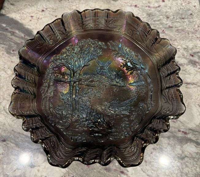 Imperial Glass Amethyst Smoke Carnival Windmill Ruffled Edge Bowl. Great condition. See photos for details.