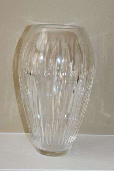 Gorgeous Waterford Carina crystal vase with vertical fluted panels and rounded form. Please see photos for more details. In overall good condition with finish wear. No other items included.