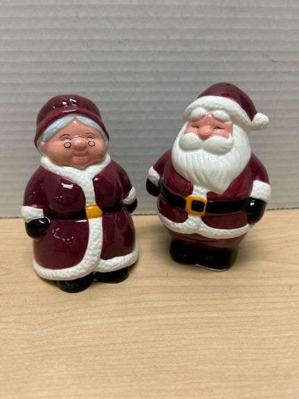 This lot features a pair of ceramic salt and pepper shakers depicting Santa Claus and Mrs. Claus, marked with 'Publix Super Markets, Inc. 2003' on the bottom of each piece. The shakers are a charming addition to holiday collections and stand approximately 3 inches tall (see photos for measurements). Both pieces include a hole on the bottom for filling, one with a plastic stopper still intact for functionality. The painted details display traditional holiday colors: Santa and Mrs. Claus are dressed in deep red and white with black accents, capturing a festive essence. | | Condition: The items appear free of cracks or chips upon inspection and show light wear consistent with age and use. The original rubber stopper is intact on Santa, while Mrs. Claus appears to be missing one. Thank you for referencing the detailed photos for a better understanding of design and condition. | | This item(s) sells as is...